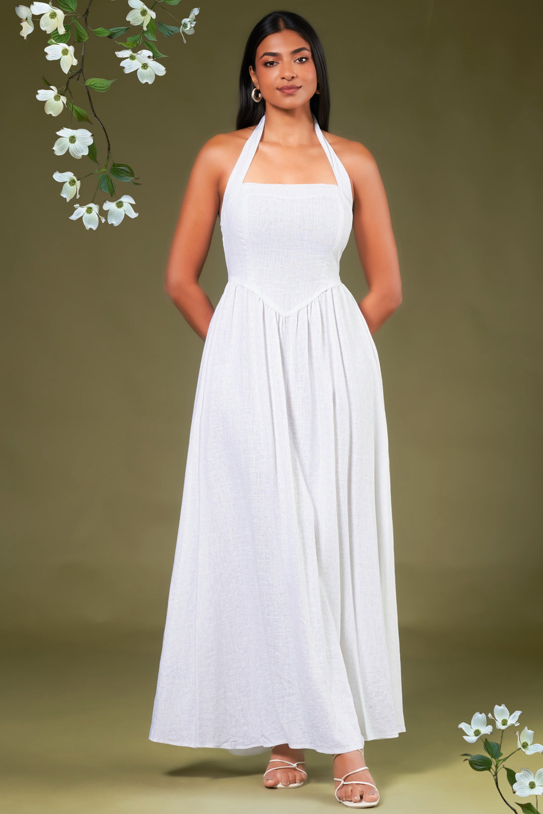 Fit & Flare Linen Maxi Dress