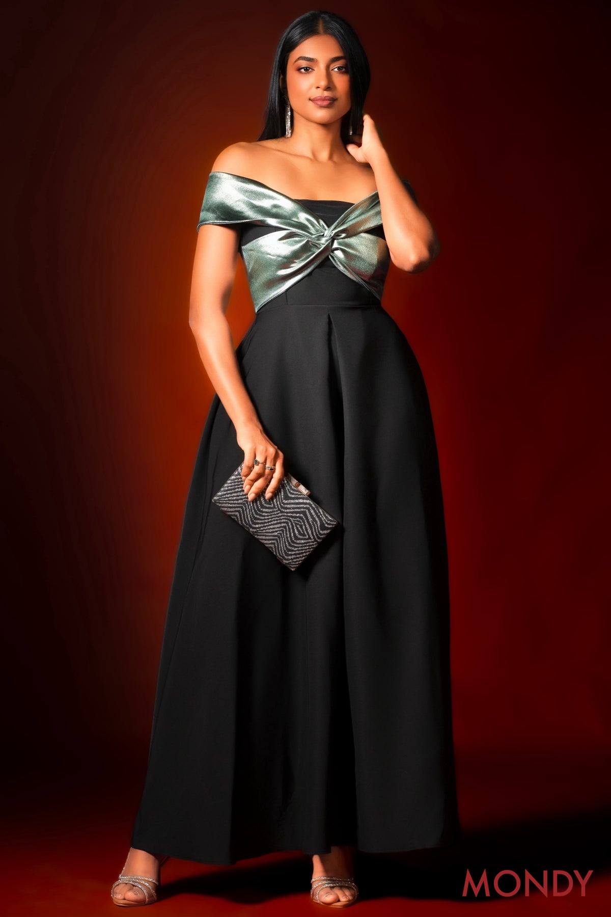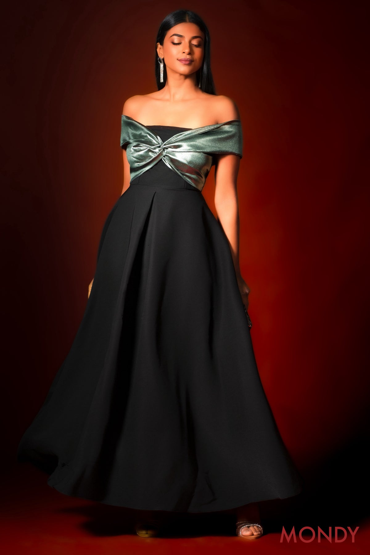 Note: The metallic shinny fabric at the bust is a green color